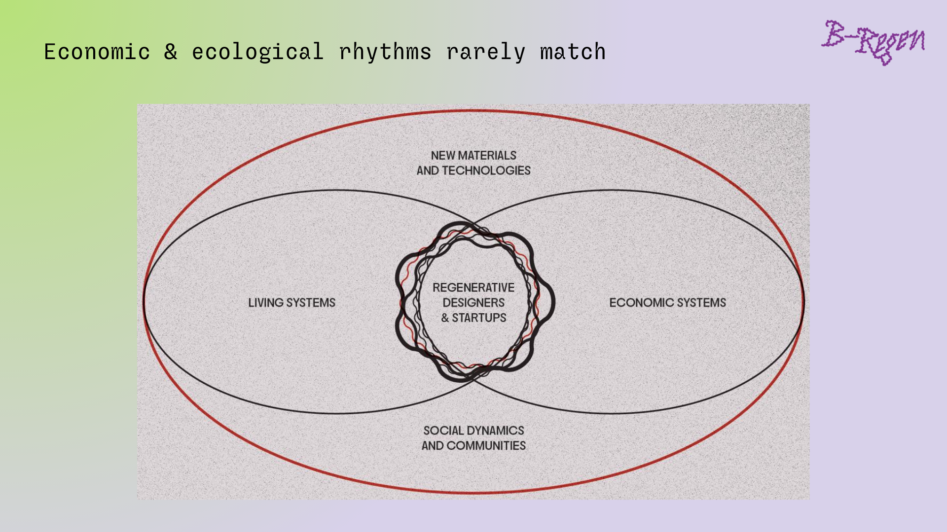 トイボネン: 非常に無限の意味とインパクトを含んだ、素晴らしい視点ですね。リジェネラティブなデザインや会社を目指すなら、まずは「生態系」から学ぶことが基本になります。自然界でどのようなスピードや循環が起きているのかを意識した上で、それをイノベーションのベースに据える。その「間」に立つのが、デザイナーであり起業家なのだと思います。