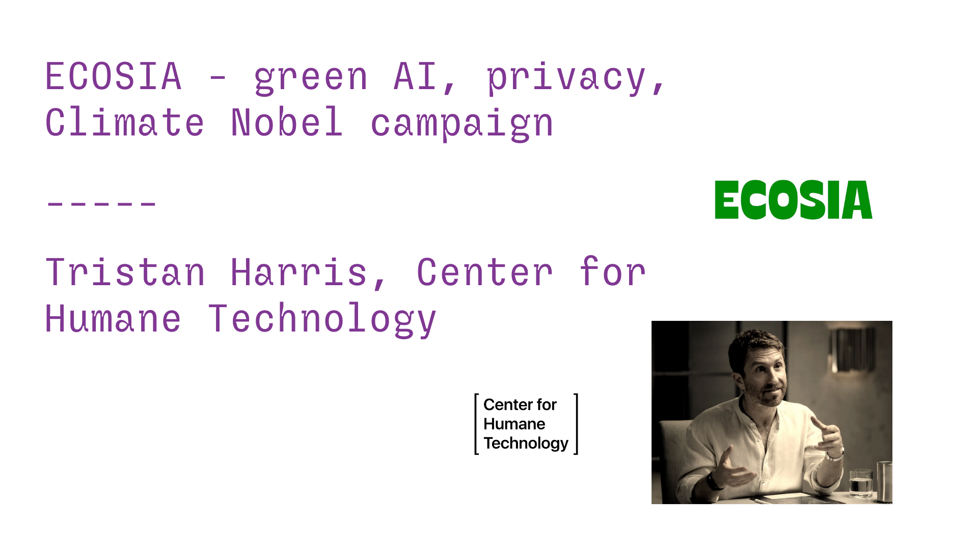 たとえば、検索エンジンのECOSIA。彼らは最近AI分野にも進出していますが、徹底して持続可能なエネルギーだけでシステムを回しています。さらに、OpenAIのような企業とは対照的に、ユーザーのプライバシーを厳格に守り、データを搾取しない姿勢を貫いています。